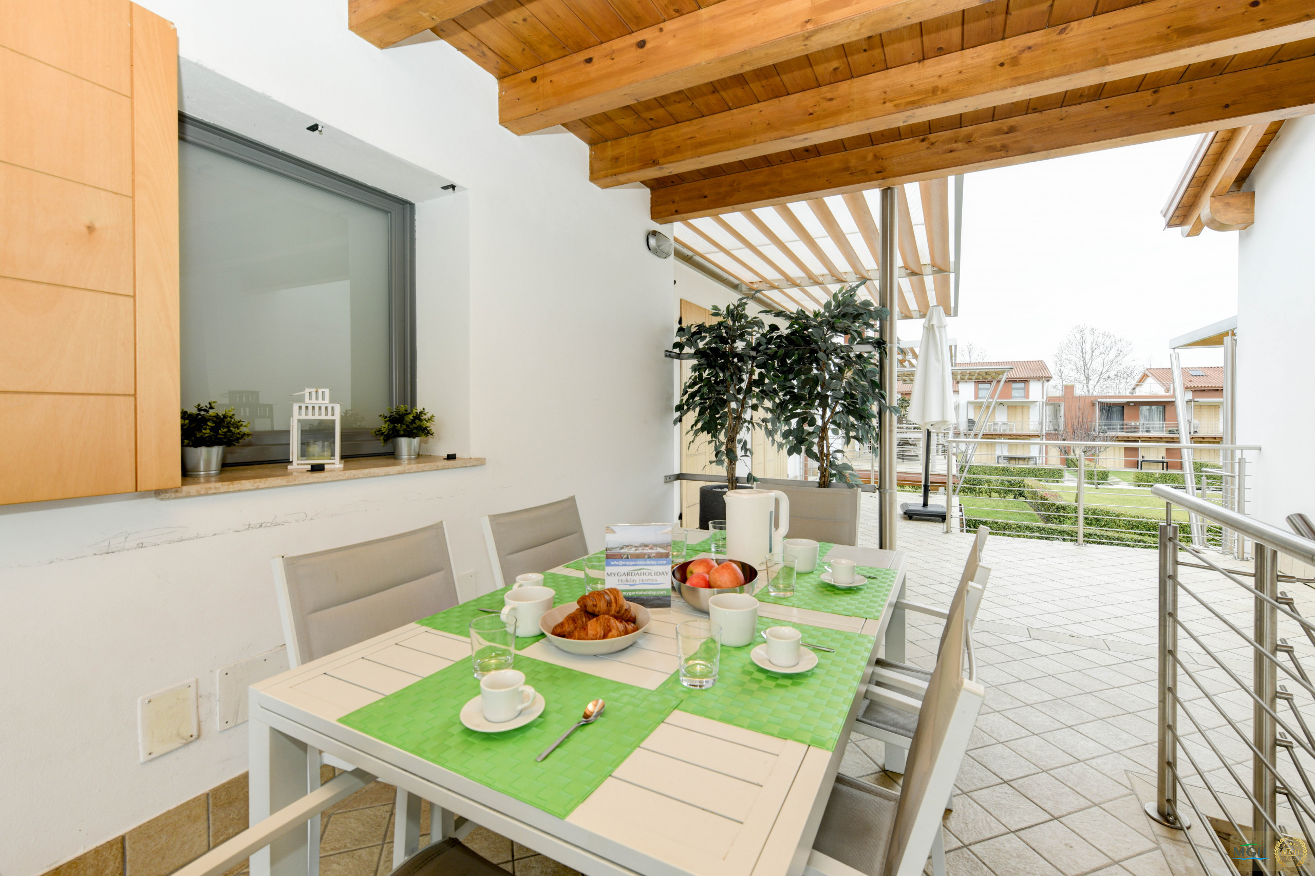 Il Residence Borgo Gasparina è particolarmente apprezzato per le generose dimensioni degli appartamenti, la splendida piscina fronte lago e la posizione impareggiabile a due passi dalla spiaggia.