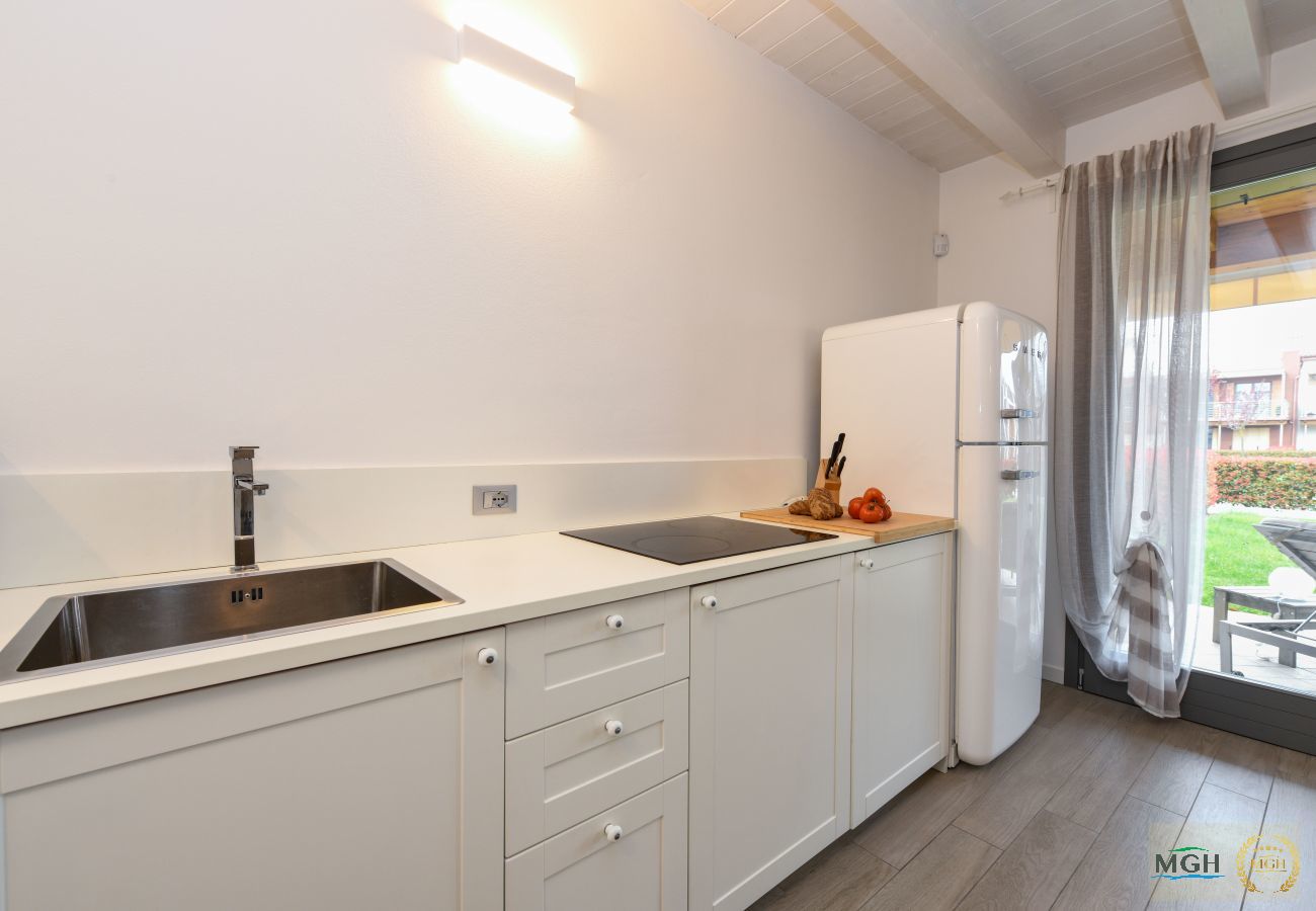 Situato in un elegante complesso residenziale con accesso diretto alla spiaggia, ampi spazi verdi e piscina, questo alloggio è la scelta ideale per chi cerca relax, comfort e una posizione strategica tra Peschiera del Garda e Castelnuovo del Garda.