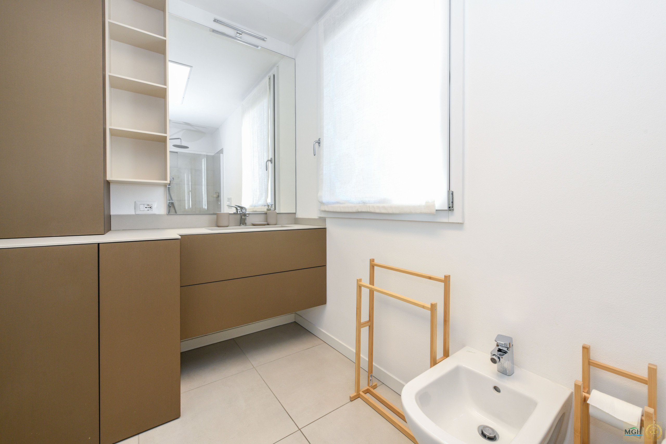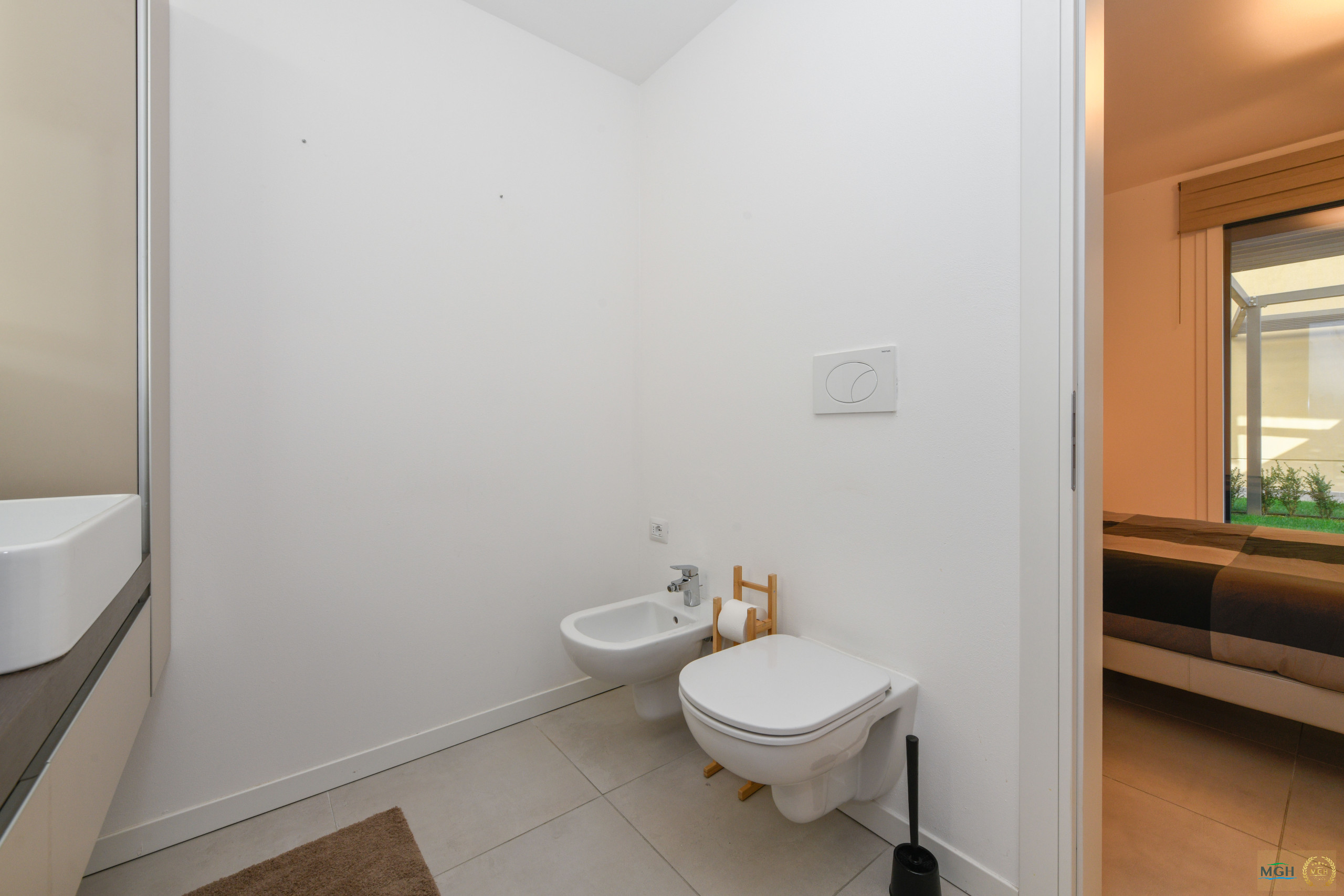 Un ulteriore punto di forza è lo spazio esterno privato, accessibile sia dal soggiorno sia dalle camere matrimoniali: un giardino ideale per far giocare i bambini in sicurezza o per rilassarsi all’ombra, immersi nella quiete del contesto.