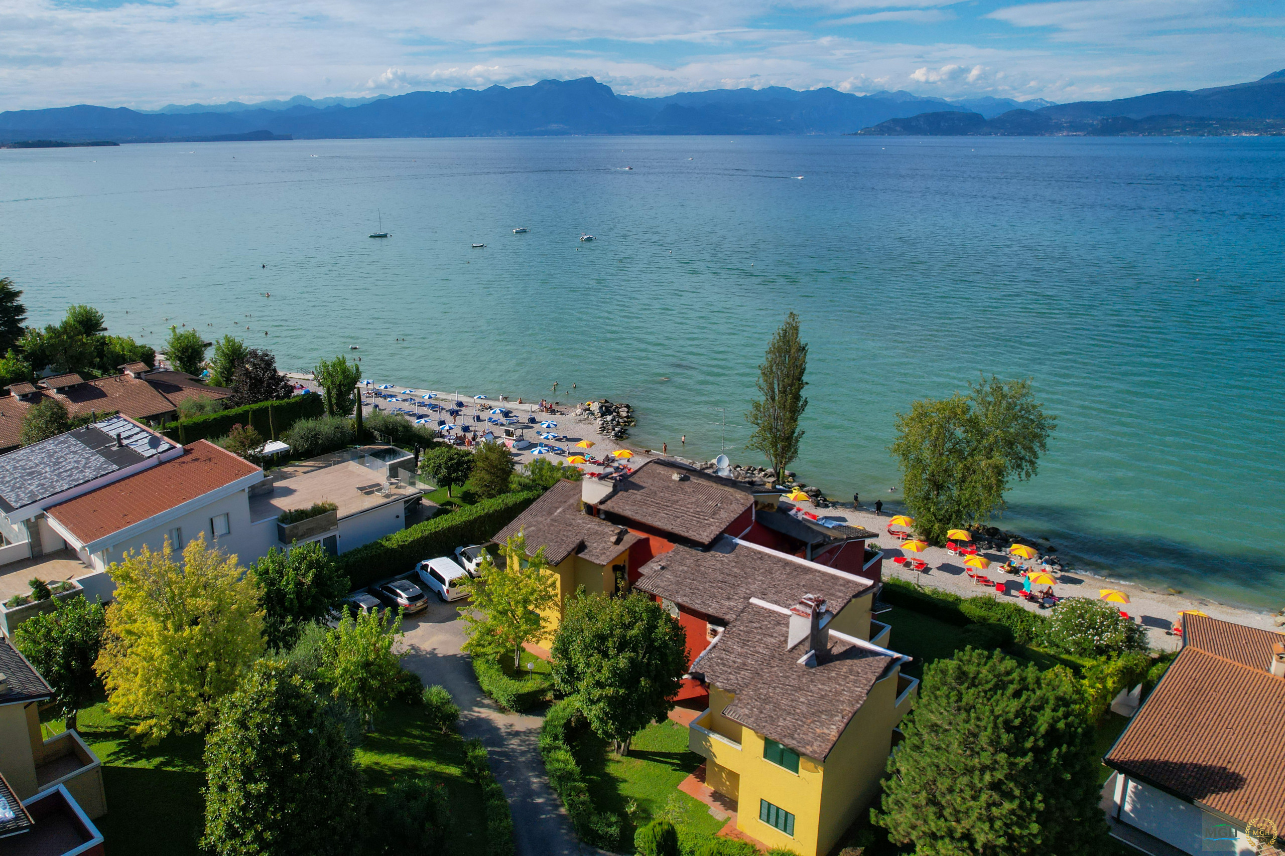Appartamento per vacanze direttamente sul lago con vista sul lago di Garda, sulle montagne e sulla spiaggia di Bracco Baldo. L'appartamento si trova al 1° piano di un complesso residenziale con diversi edifici, ciascuno con 6 unità. C'è una camera da letto con letto matrimoniale e accesso al balcone, un bagno con luce naturale con doccia, WC, lavandino e bidet e una luminosa zona giorno con divano letto matrimoniale, TV, vista sul lago e accesso al balcone, nonché un angolo cottura separato con fornelli, frigorifero, forno a microonde, lavandino e macchina da caffè Krups Lavazza (Vertuo Next) e utensili da cucina. C'è una zona pranzo nella zona giorno e un tavolo con 4 sedie sull'ampio balcone dell'appartamento.