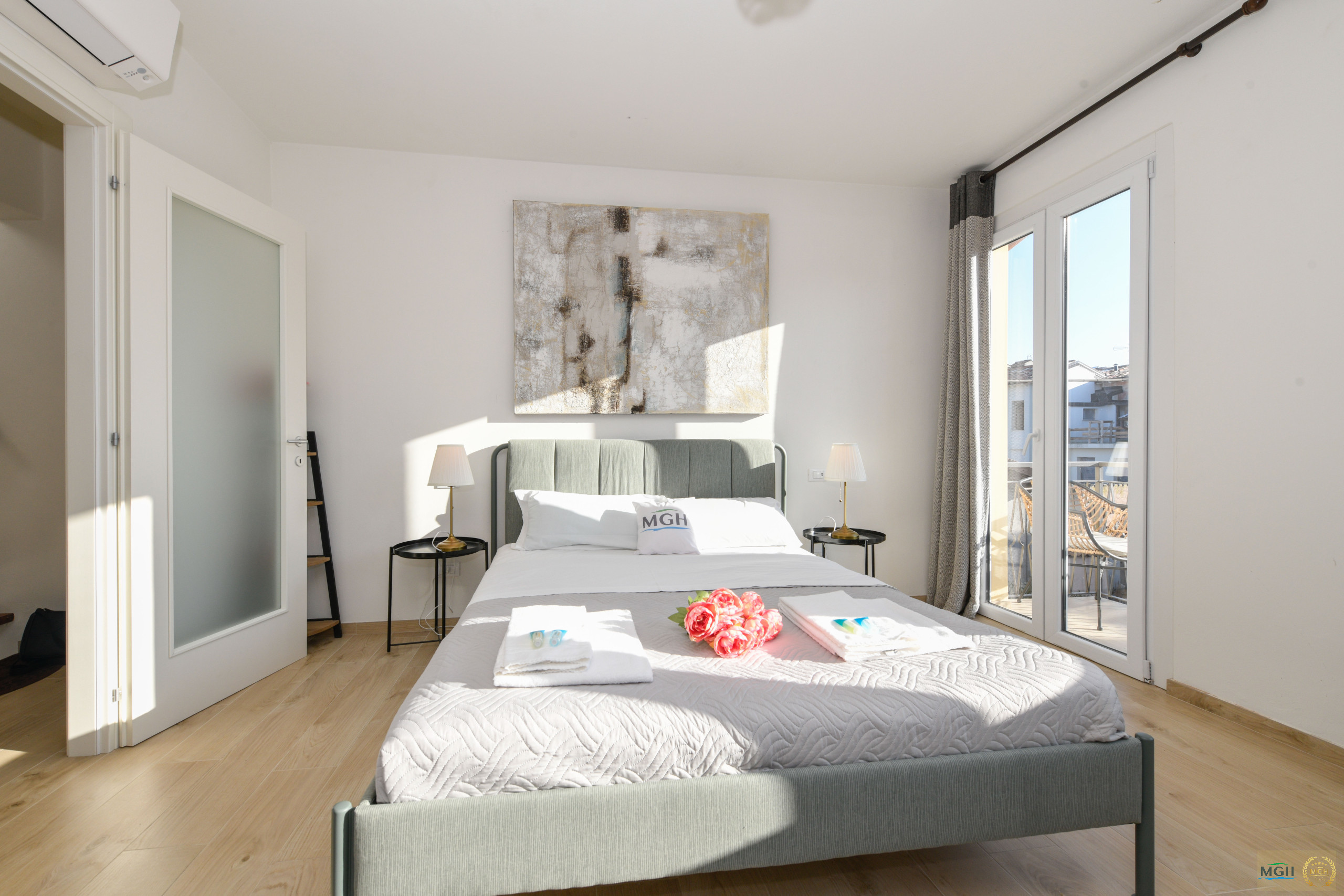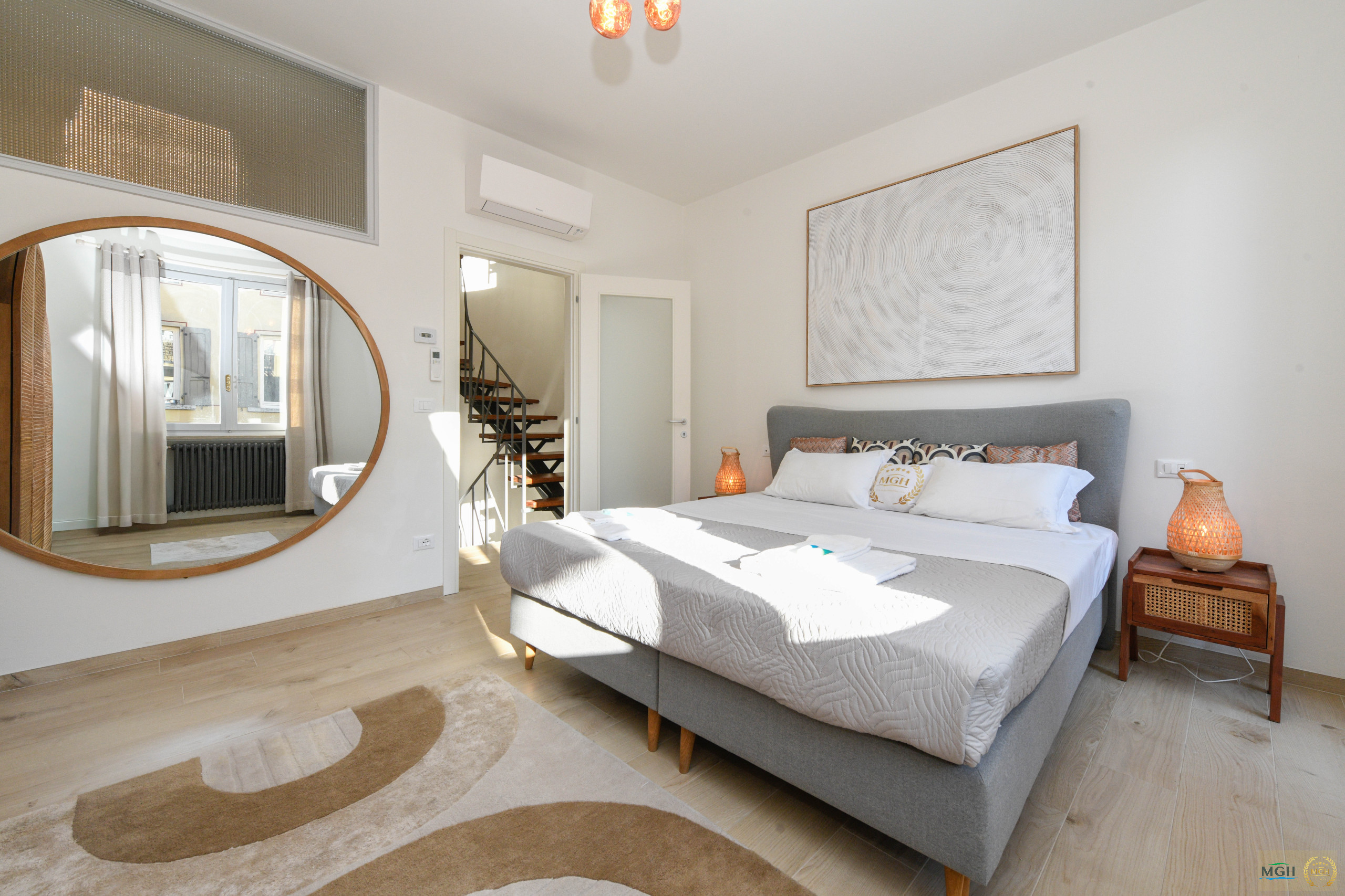 All’interno trovano spazio due camere da letto matrimoniali, entrambe particolarmente luminose e arredate con gusto, pensate per garantire relax e privacy in un contesto elegante e armonioso. Le camere si trovano rispettivamente al secondo e al terzo piano, con una camera per ogni livello, offrendo così spazi ben distribuiti e una maggiore indipendenza tra gli ospiti. Inoltre, un grande valore aggiunto è che ogni camera dispone del proprio bagno privato sullo stesso piano, assicurando comfort e praticità assoluta.