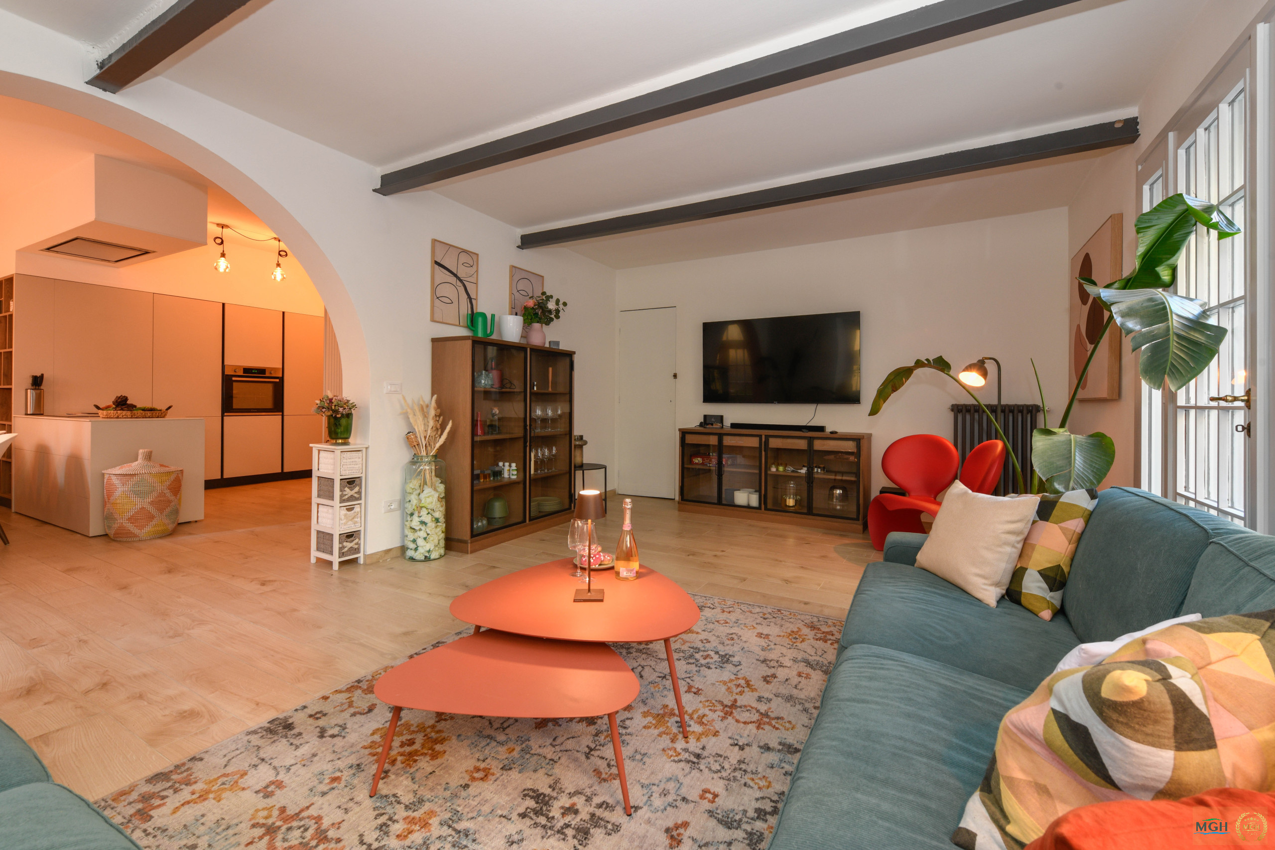 Il cuore della casa è l'ampio salotto, caratterizzato da spazi generosi e da un’atmosfera accogliente, ideale per trascorrere piacevoli momenti in compagnia. La cucina è completa e moderna, dotata di tutti i principali elettrodomestici come frigorifero con freezer, piano a induzione, macchina del caffè, tostapane e bollitore, perfetta per chi ama sentirsi a casa anche in vacanza.