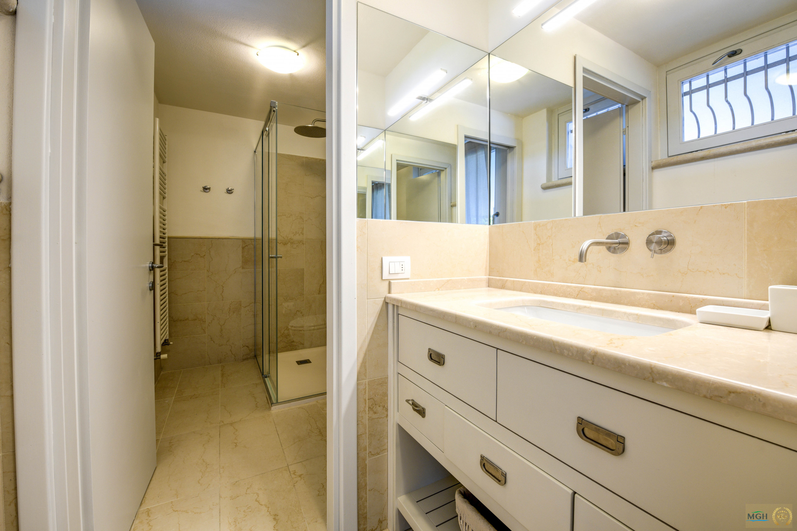Una bella scala in marmo conduce alla zona notte superiore. Ci sono 2 ampie camere matrimoniali, ognuna con il proprio bagno, e una camera doppia, anch'essa con il proprio bagno. Dalla camera matrimoniale si ha accesso all'ampio terrazzo, ovviamente con vista lago. Tutti i bagni sono stati completamente rinnovati nel 2021 e sono illuminati dalla luce del giorno.
