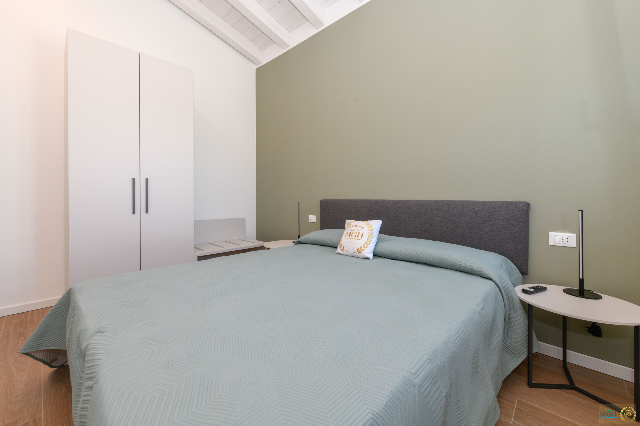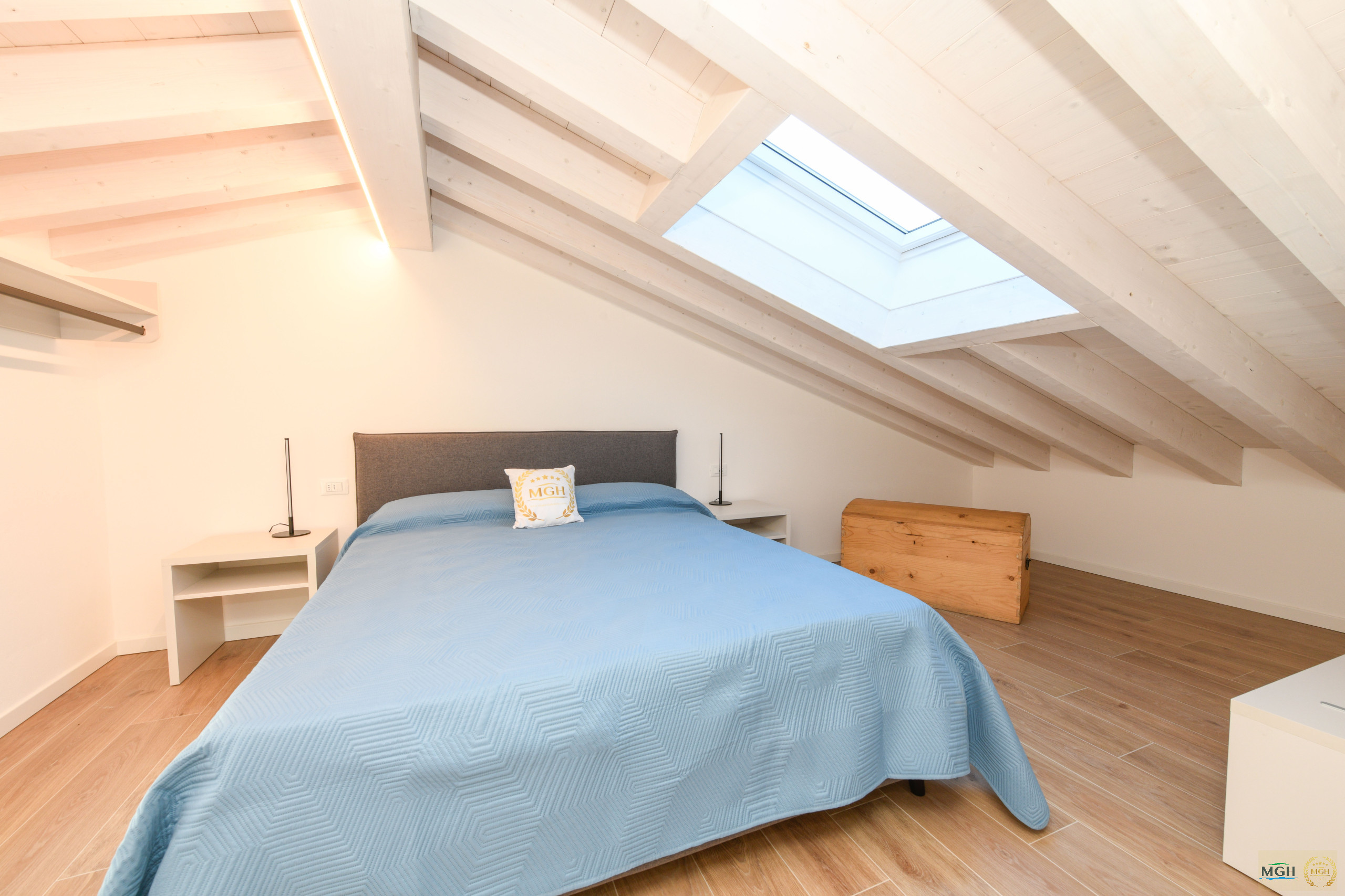 Im Erdgeschoss entwickelt sich eine breite, lichte und einladende Wohnzone, in der das Wohnzimmer mit Schlafsofa und großem Flachbildfernseher sich harmonisch mit der modernen Küche integriert, die mit allen notwendigen Haushaltsgeräten ausgestattet ist, einschließlich der Spülmaschine. Von hier aus gelangt man direkt in den privaten Garten, einen gepflegten und angenehmen Raum, der mit Essbereich und Relaxzone ausgestattet ist und ideal ist, um Momente im Freien in völliger Ruhe zu genießen. Ebenfalls im Erdgeschoss befindet sich ein erstes vollständiges Badezimmer, ausgestattet mit Dusche, Bidet, Haartrockner und allen Annehmlichkeiten.
