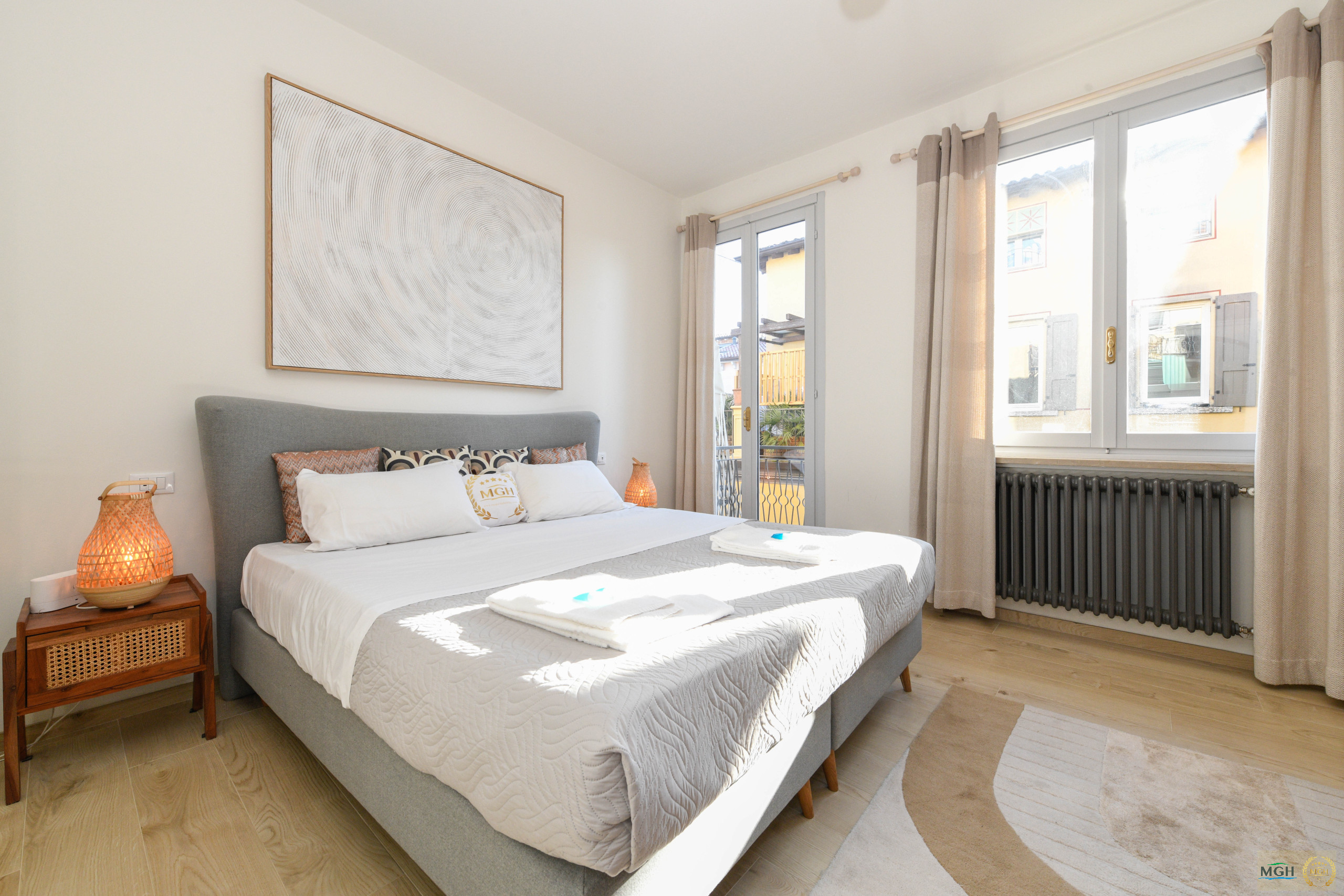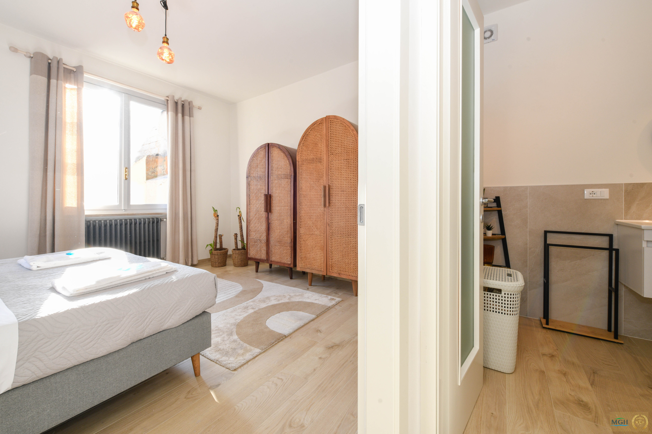 Im Inneren finden sich zwei Doppelschlafzimmer, beide besonders hell und geschmackvoll eingerichtet, konzipiert, um Entspannung und Privatsphäre in einem eleganten und harmonischen Umfeld zu gewährleisten. Die Zimmer befinden sich jeweils im zweiten und dritten Stock, mit einem Zimmer pro Etage, wodurch gut verteilte Räume und eine größere Unabhängigkeit zwischen den Gästen geschaffen werden. Darüber hinaus ist ein großer Mehrwert, dass jedes Zimmer über ein eigenes Badezimmer auf derselben Etage verfügt, was absoluten Komfort und Praktikabilität sicherstellt.