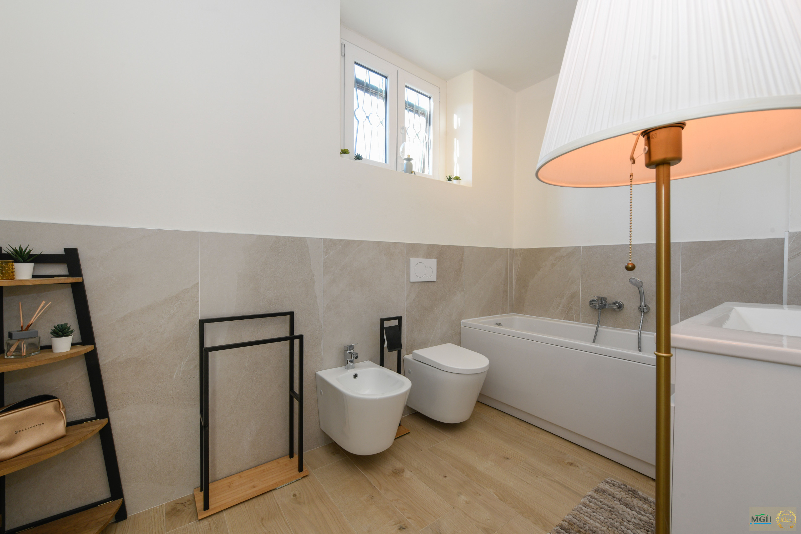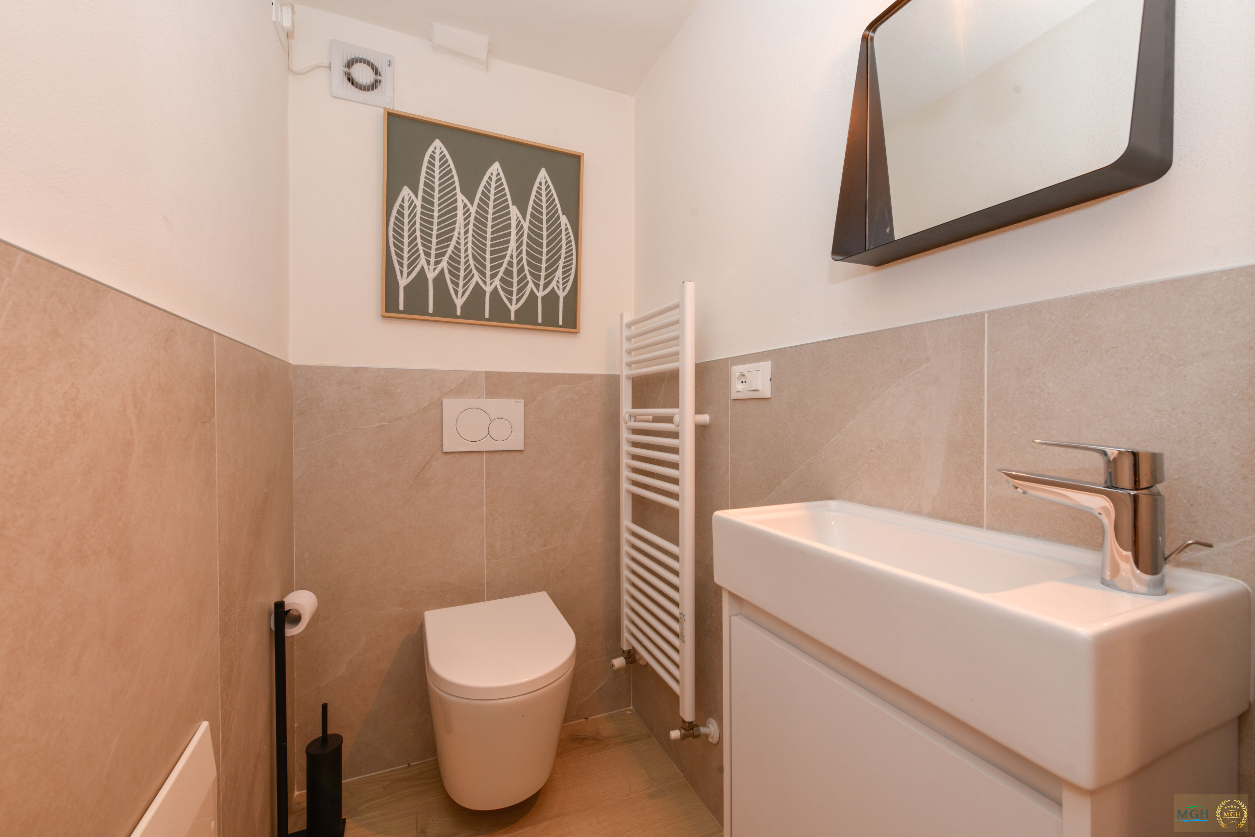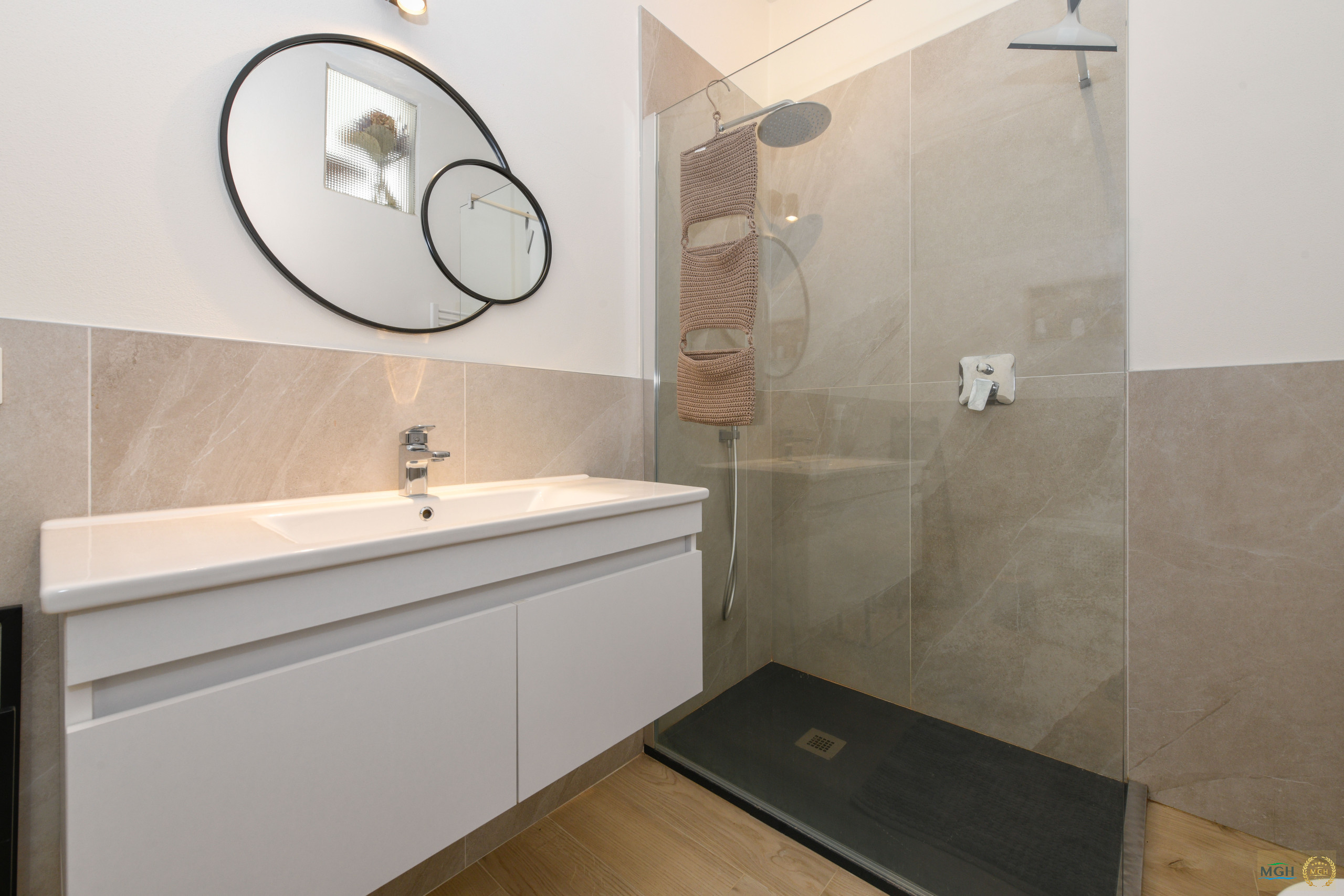 Die beiden Badezimmer sind darauf ausgelegt, alle Bedürfnisse zu erfüllen: Eines verfügt über eine geräumige Dusche, während das andere zusätzlich eine entspannende Badewanne bietet. Beide sind mit WC und Bidet ausgestattet und gewährleisten während des gesamten Aufenthalts ein hohes Komfortniveau.