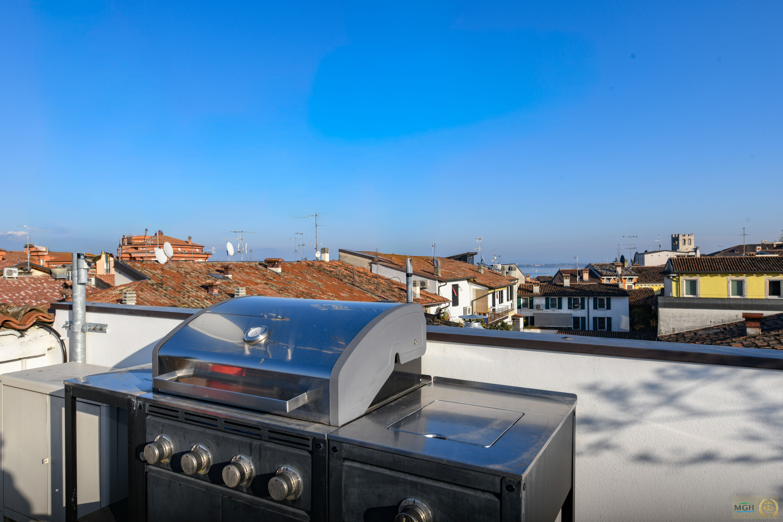 Ein der suggestivsten Elemente dieser Immobilie ist ohne Zweifel die große seeblickende Terrasse, ausgestattet mit einem Barbecue, ein idealer Raum für Mittagessen und Abendessen im Freien, Momente der Geselligkeit oder einfach um die Farben des Sonnenuntergangs über dem See zu genießen. Die Terrasse stellt eine wahre Erweiterung des Hauses dar, perfekt um die Atmosphäre des Garda vollständig zu erleben.