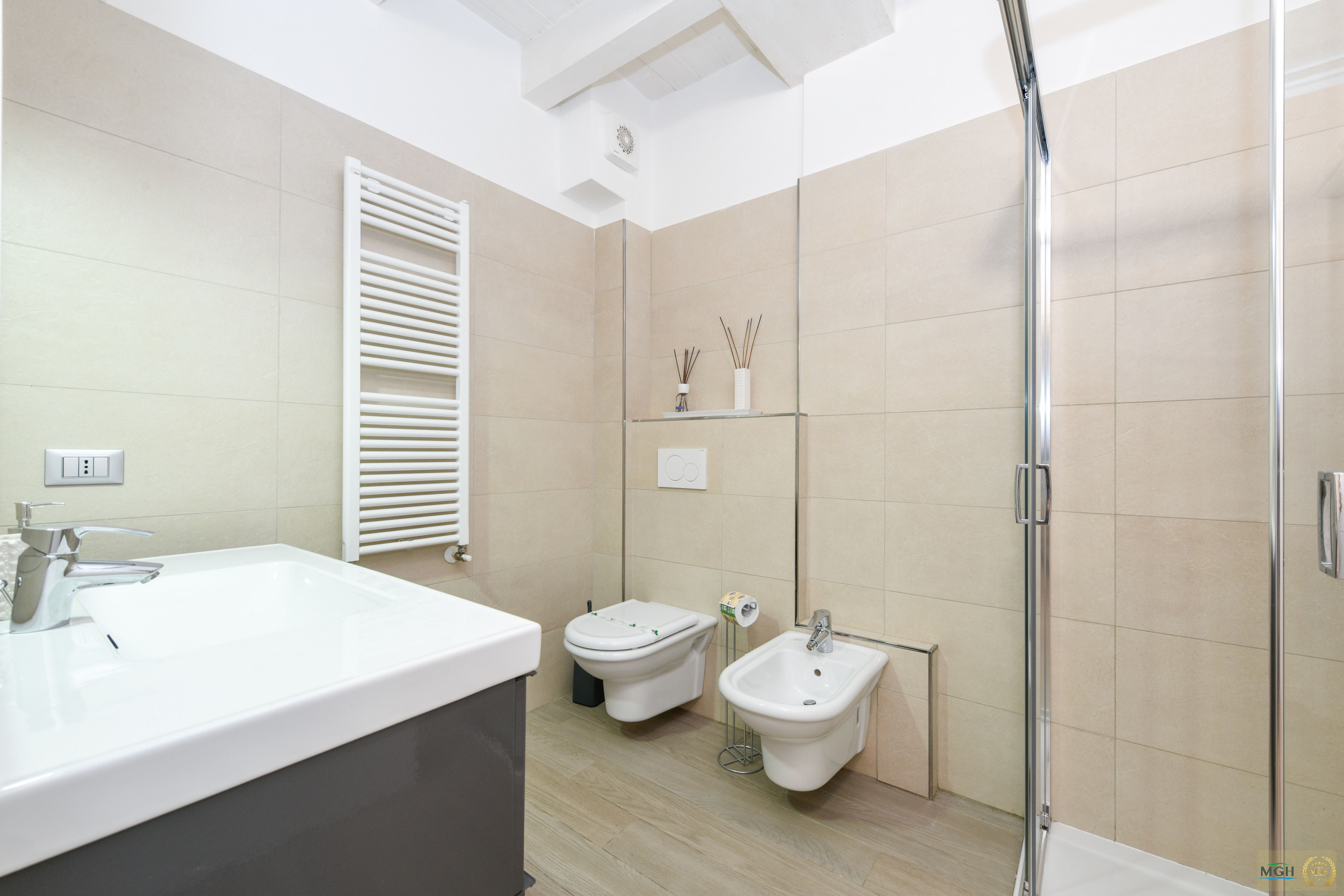 Die Wohnung verfügt über zwei klimatisierte Doppelschlafzimmer, ein Badezimmer mit Dusche, WC und Bidet und einen hellen Wohnbereich mit einer voll ausgestatteten Küchenzeile, einschließlich Geschirrspüler, Mikrowelle und Kühlschrank.