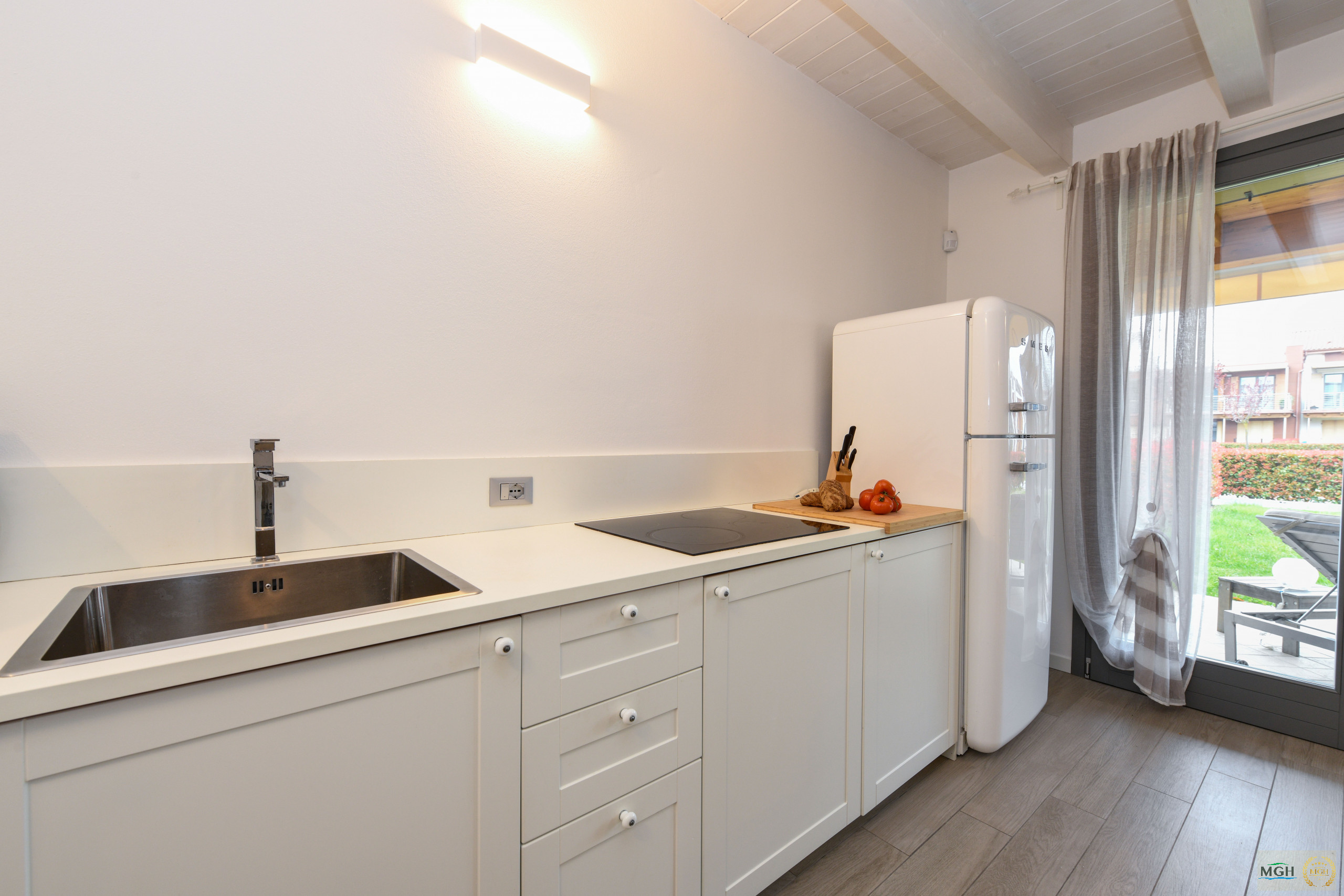 In einer eleganten Wohnanlage mit direktem Zugang zum Strand, großen Grünflächen und einem Swimmingpool gelegen, ist diese Unterkunft die ideale Wahl für alle, die Entspannung, Komfort und eine strategische Lage zwischen Peschiera del Garda und Castelnuovo del Garda suchen.