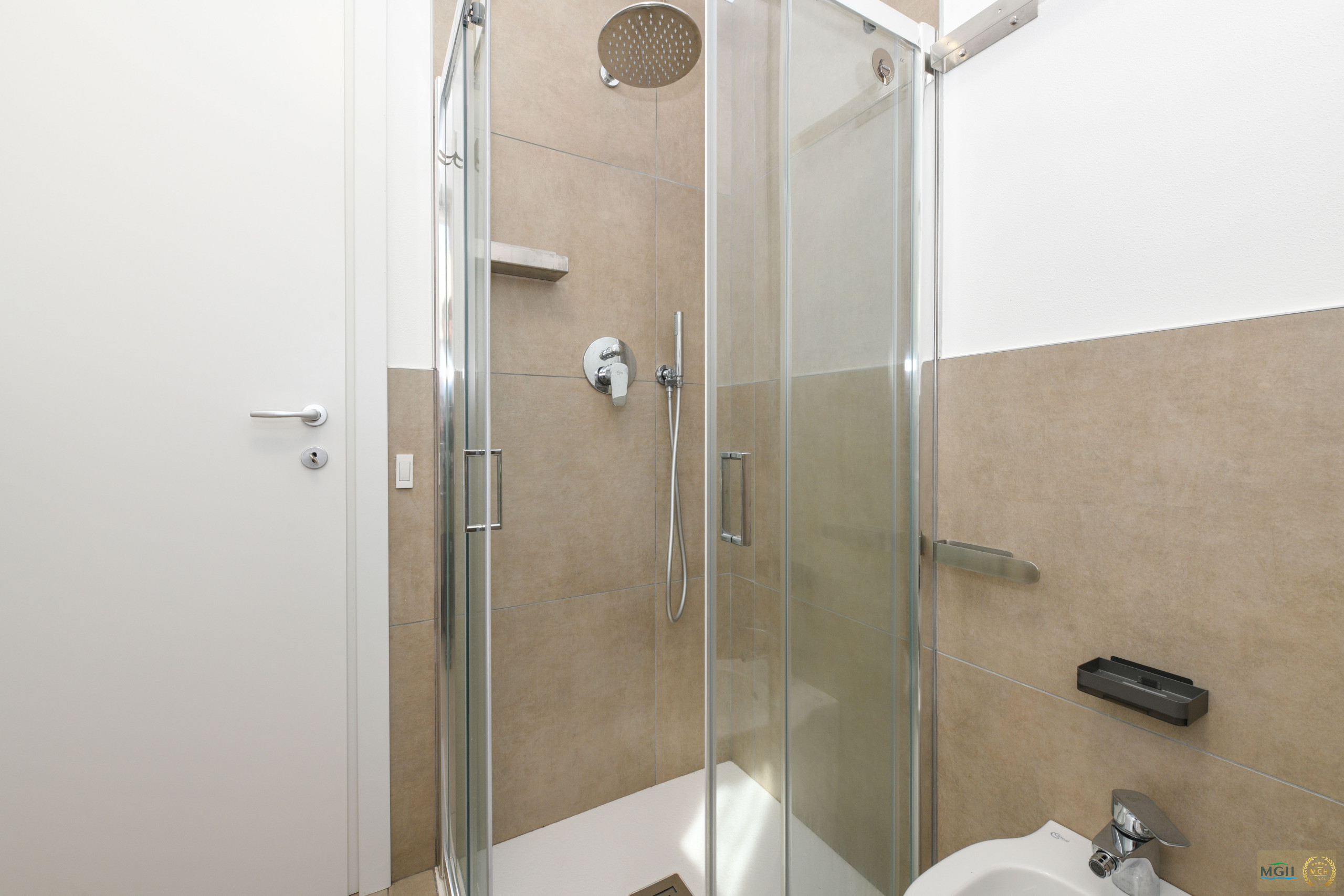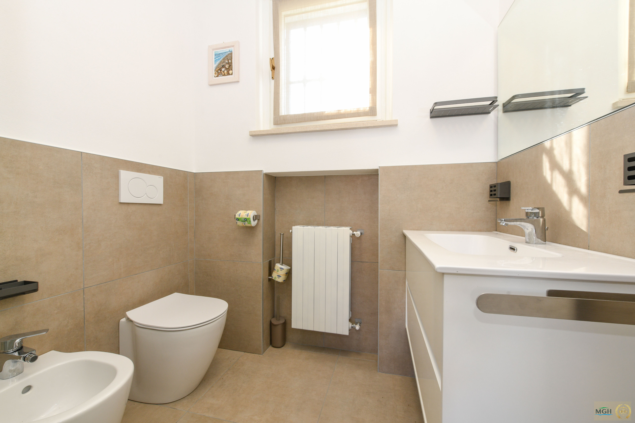 Alle Räume sind mit Heiz-/Kühlsystemen klimatisiert und gewährleisten einen komfortablen Aufenthalt in jeder Jahreszeit. Die Wohnung verfügt zudem über einen leicht zugänglichen privaten Autostellplatz. Die die ganze Nacht beleuchtete Garage ist mit Waschmaschine, Waschbecken, Spiegel, Tisch und Regalen ausgestattet und bietet eine praktische Waschzone.