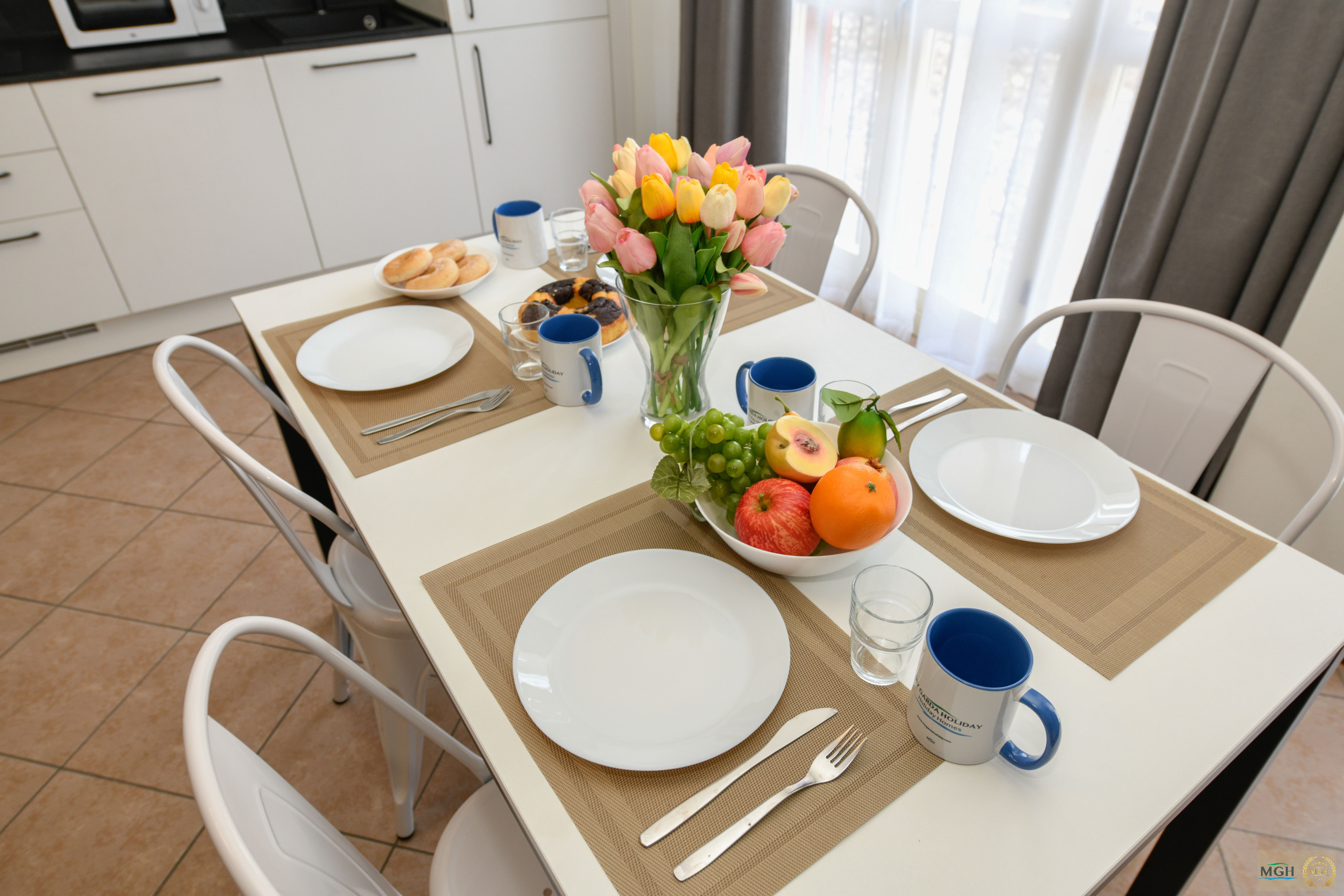 Die Wohnung befindet sich im zweiten Stock eines kleinen Gebäudes mit nur fünf Einheiten, die alle direkt von uns verwaltet werden: eine perfekte Lösung auch für mehrere Familien oder Freundesgruppen, die den Urlaub gemeinsam verbringen möchten, aber mit dem Komfort der eigenen Unabhängigkeit.