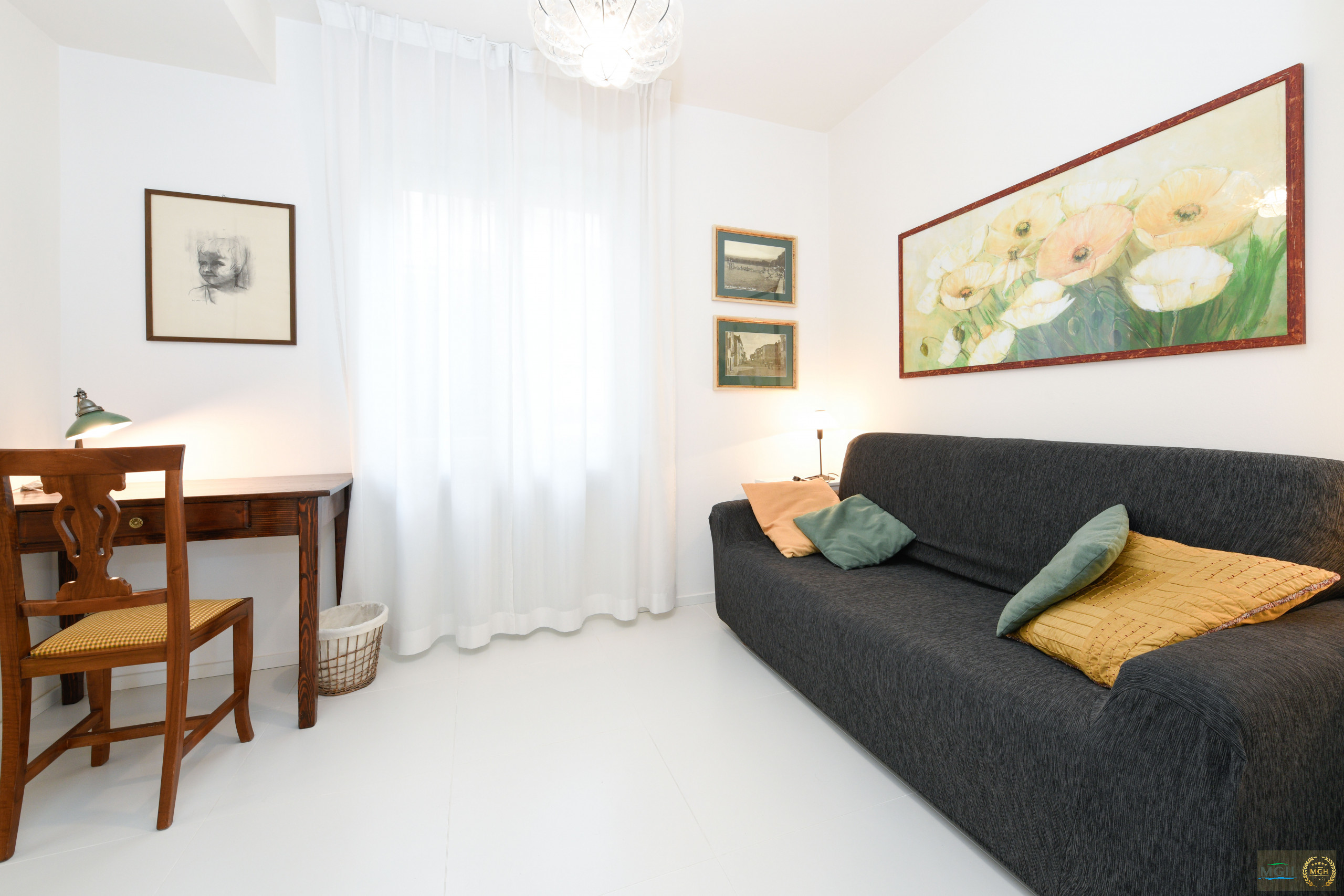 Large living room equipped with air conditioning , sofa, TV, WiFi, Netflix Subscription and a fully equipped kitchen with dishwasher, gas stove, oven and dining area. The kitchen offers all the necessary utensils for cooking: refrigerator with freezer, waffle coffee maker and kettle.