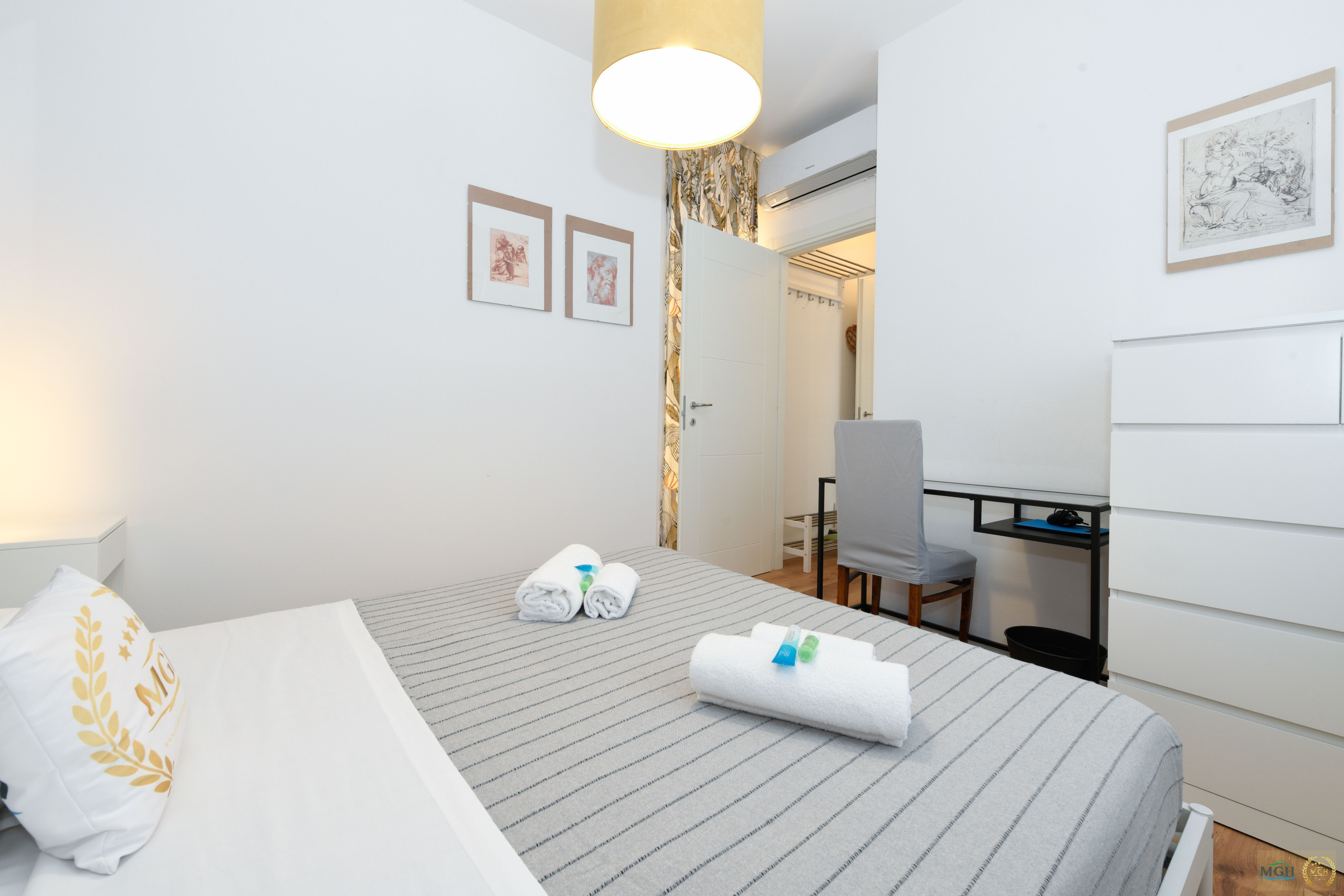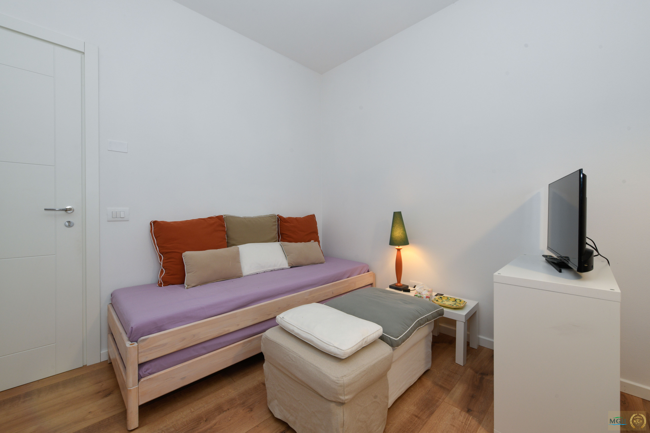 The apartment is created from the subdivision of a larger unit and is one of two mirror solutions, both perfect for couples, located on the same floor. On the lower floor, there is another apartment with a garden, capable of accommodating up to 6 people.