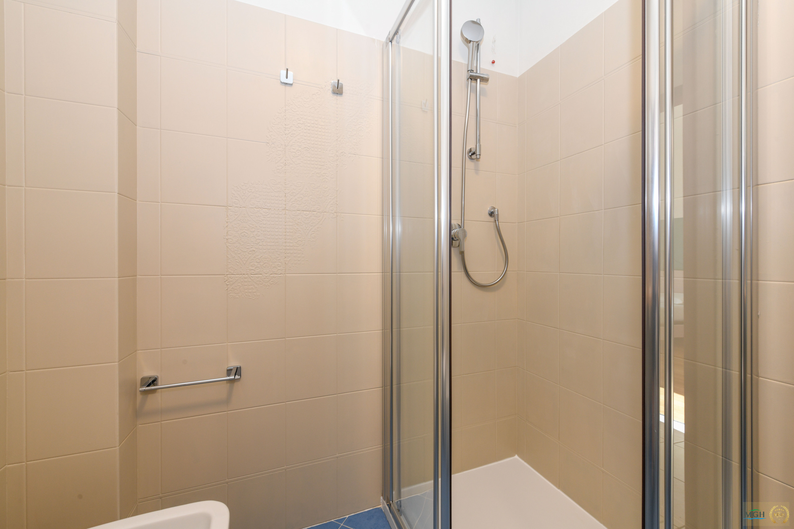 The bathroom, modern and functional, is equipped with a shower, hairdryer, washing machine and all the necessary accessories for a worry-free stay.
