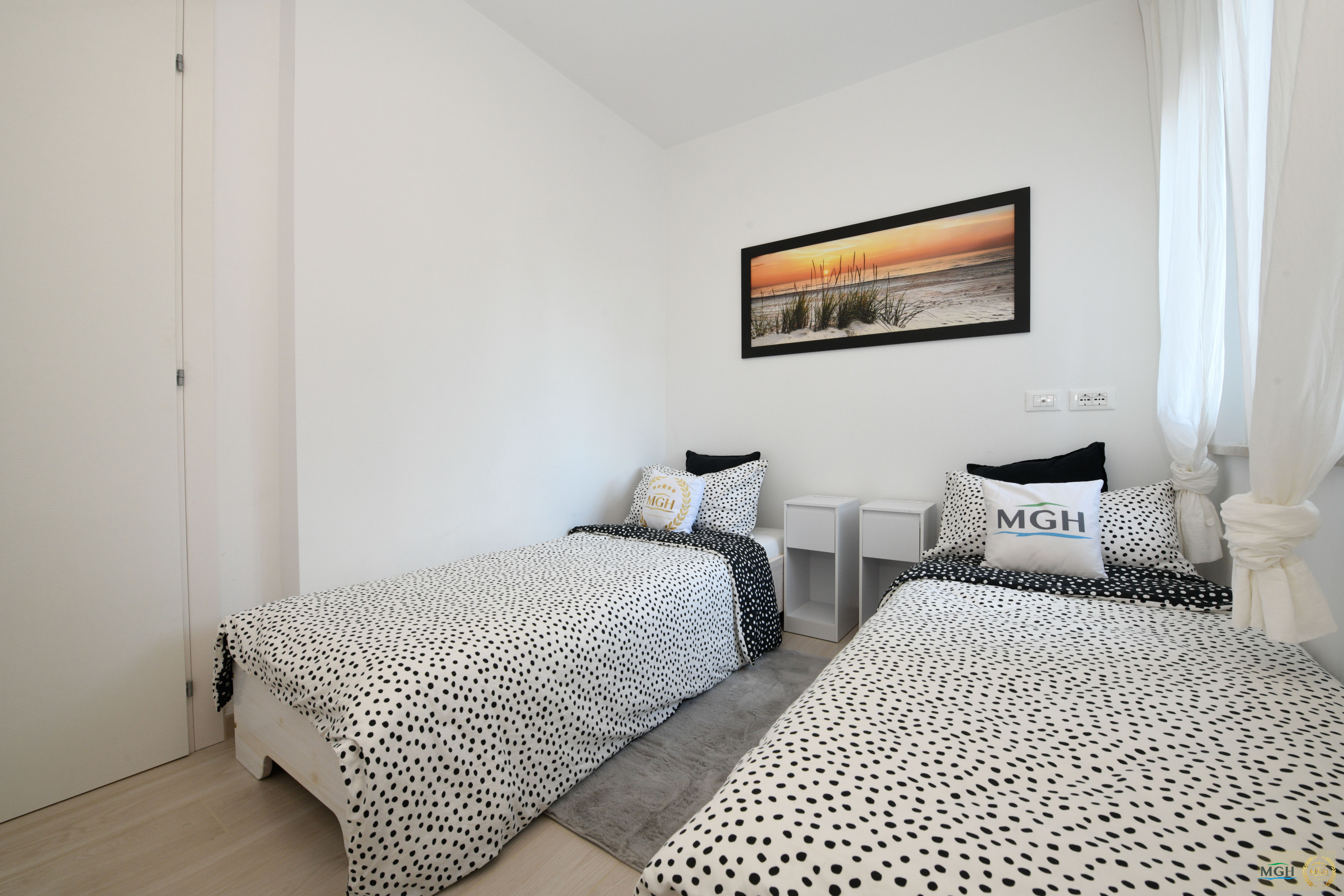 the apartment has two bedrooms, a master bedroom and a room with single beds, perfect for children.