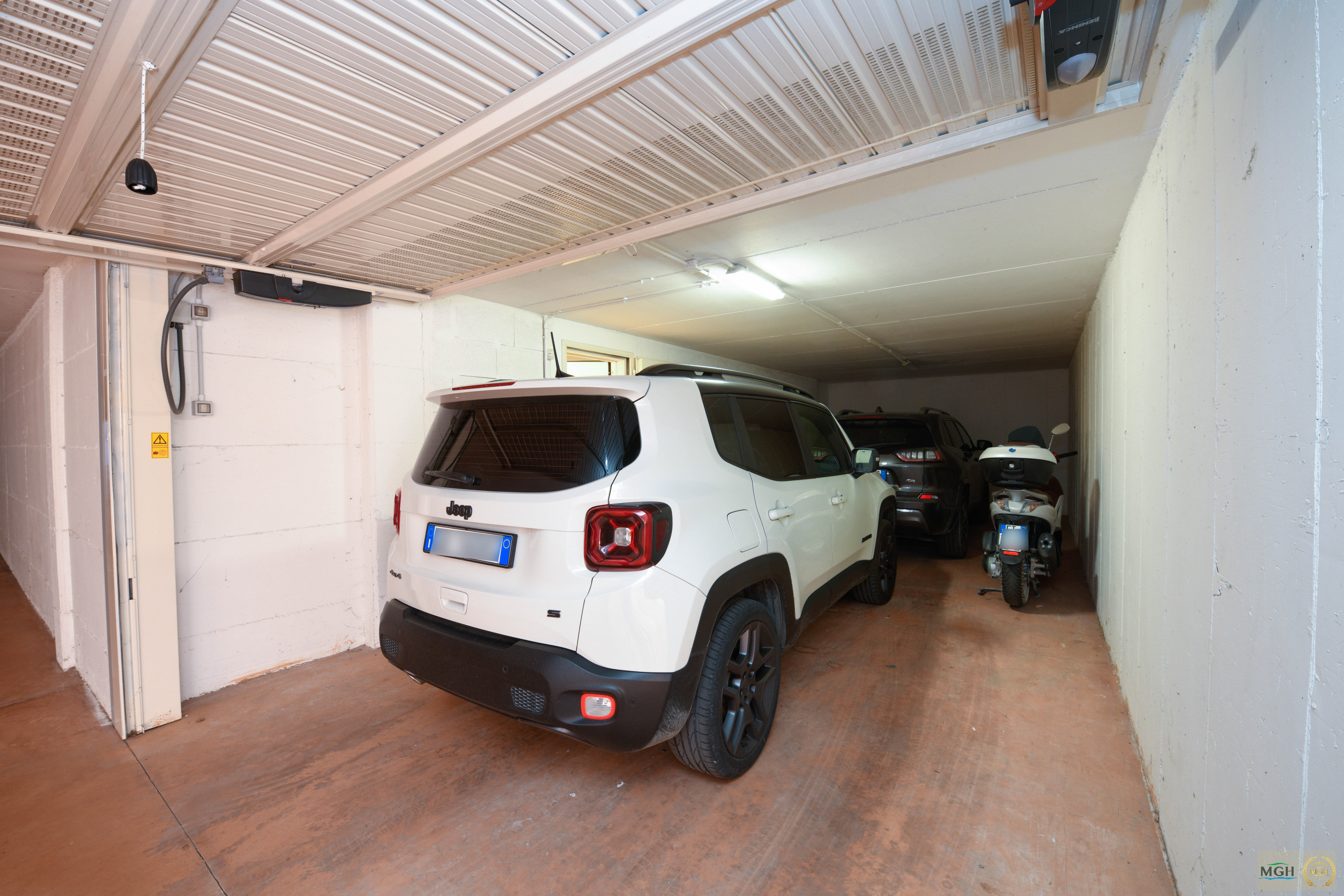 You enter the apartment via the comfortable private double garage (longitudinal). In the basement there is a bathroom with shower, toilet, bidet and washing machine. A marble staircase takes you to the ground floor, where the main entrance door is located and a large living room with a fully equipped kitchenette, dining table, sofa (double sofa bed if required) and TV. From the living room you enter the west-facing terrace and the garden, where you will spend relaxing hours during your stay. There are two comfortable, air-conditioned double rooms with high-quality mattresses and sufficient closet space, even for longer stays. Another bathroom with shower, toilet, bidet and window rounds off the comfortable furnishings of this holiday apartment.