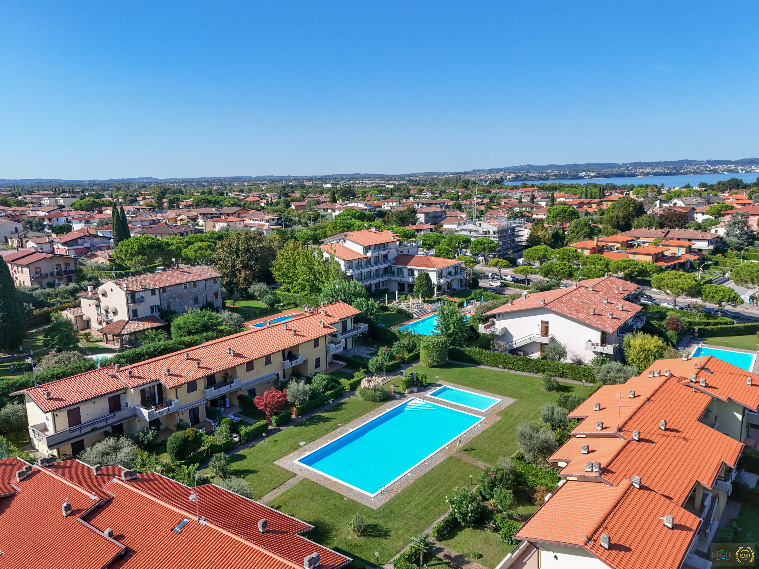 The residence offers additional advantages, such as a splendid communal swimming pool nestled in greenery, accessible via shower and with mandatory swimming cap. The entire area is completely fenced, maintained and illuminated even during the night, ensuring safety and peace of mind. The Brema area, where the residence is located, is one of the most appreciated in Sirmione: quiet, liveable all year round and characterised by spacious and orderly spaces.