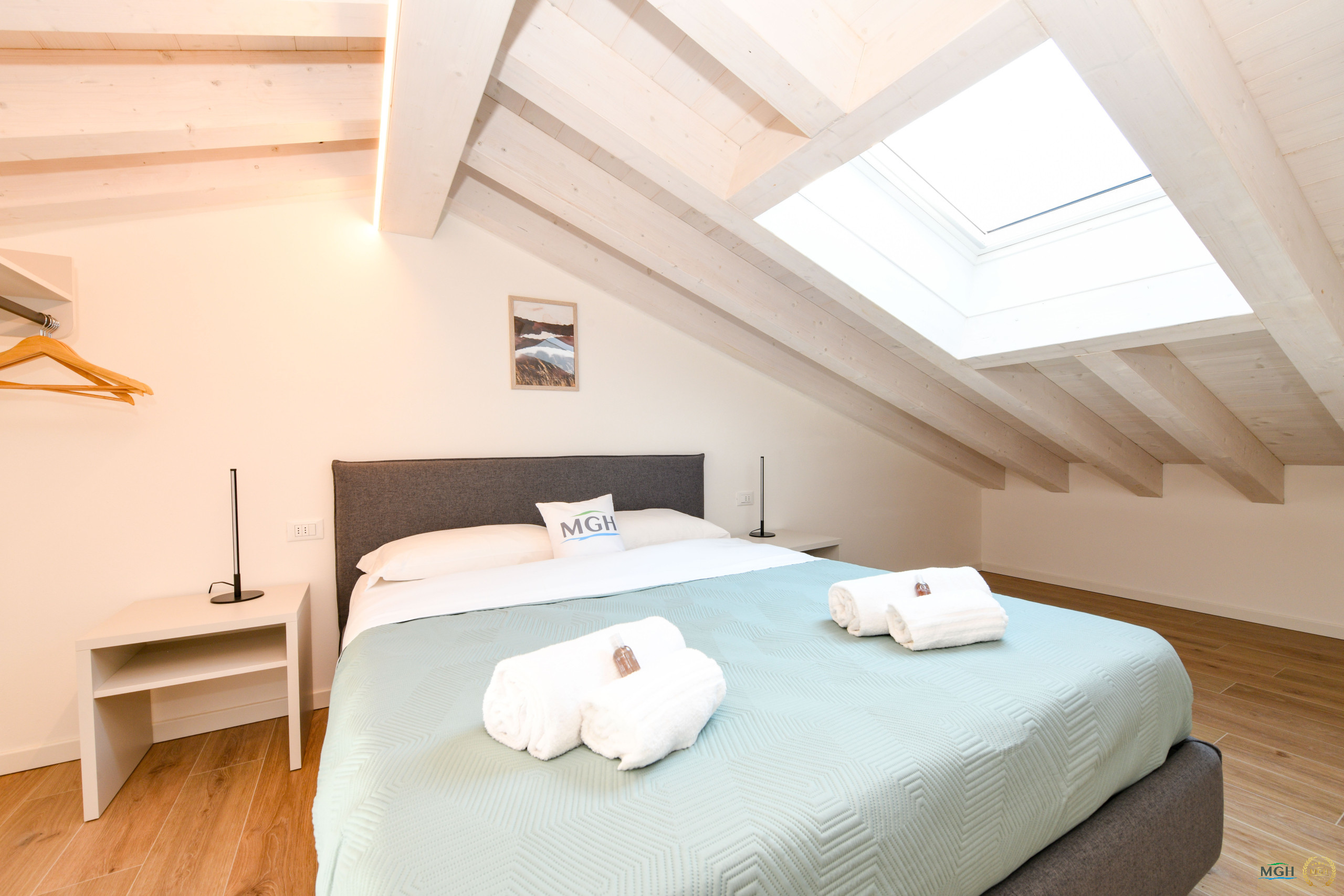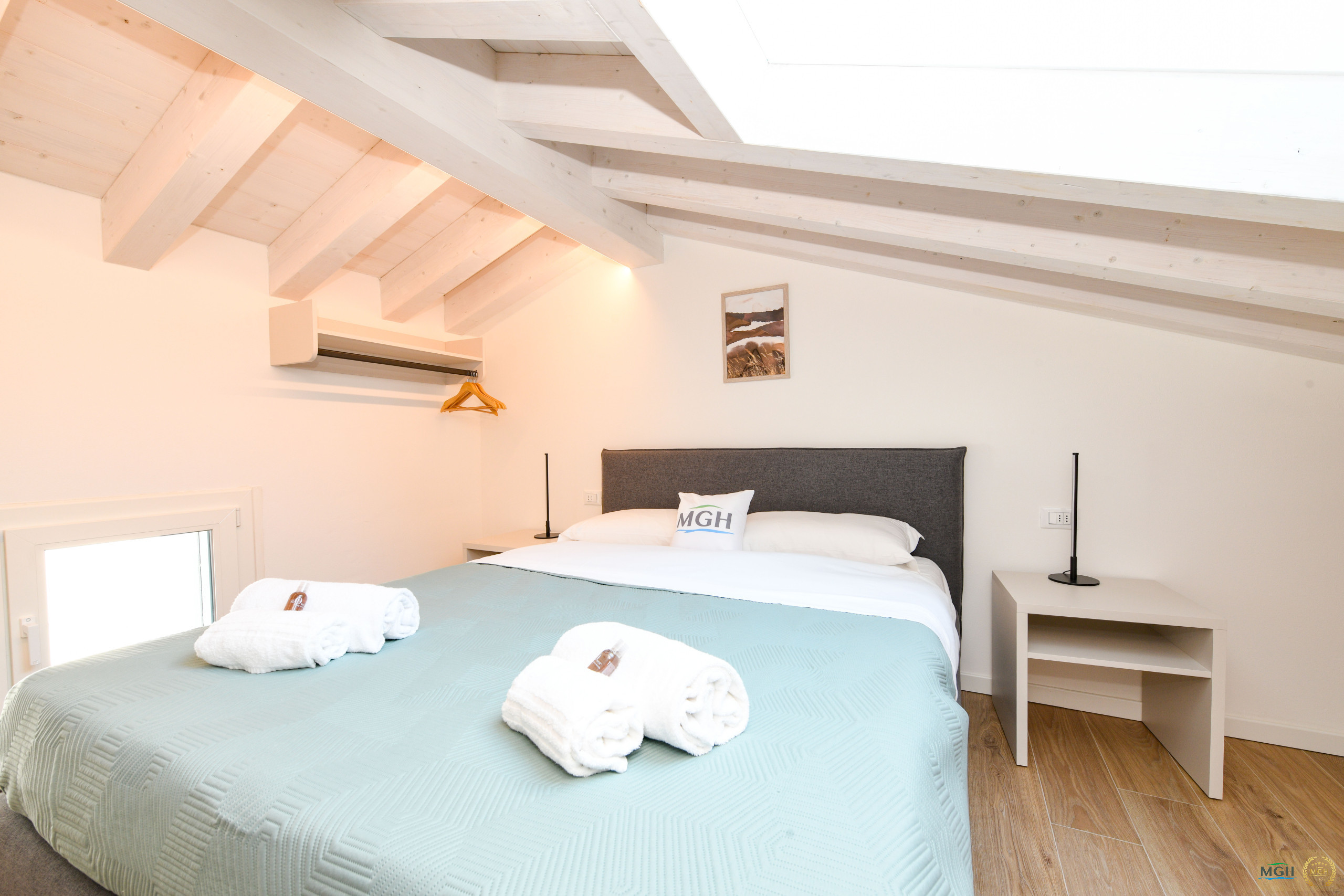 The upper floor houses three spacious and elegant double bedrooms, with a private bathroom. The rooms are well-maintained, bright and designed to ensure privacy and comfort even for larger groups. The house is also equipped with Wi-Fi and a covered garage, to make the stay even more practical and comfortable.