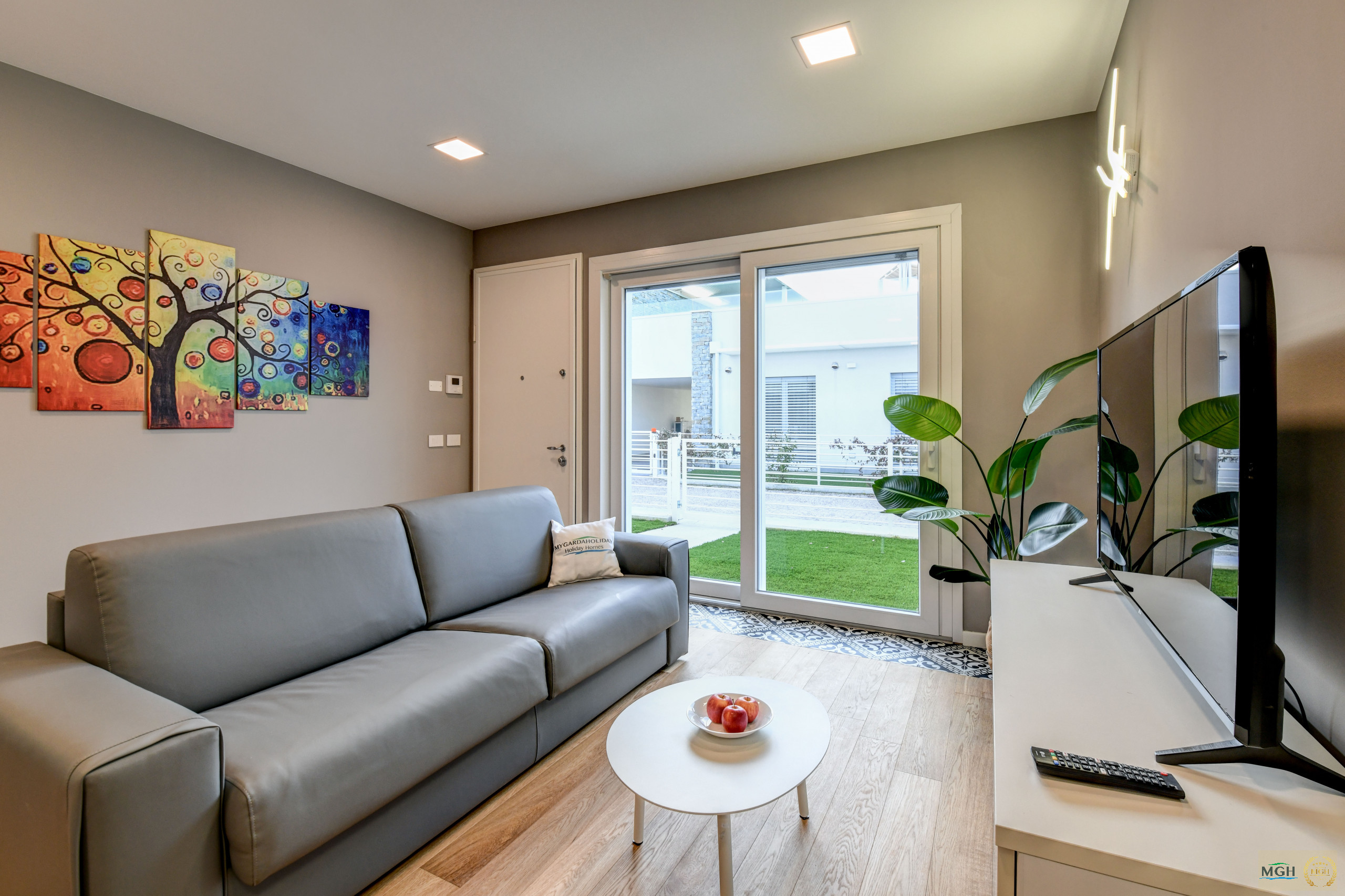 The villa offers bright, spacious and meticulously detailed environments, with high-quality furnishings designed to offer maximum comfort. It has two double bedrooms, two modern bathrooms with shower, an open-plan living area with a fully equipped kitchen, a comfortable sofa bed and satellite TV.